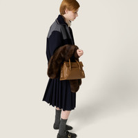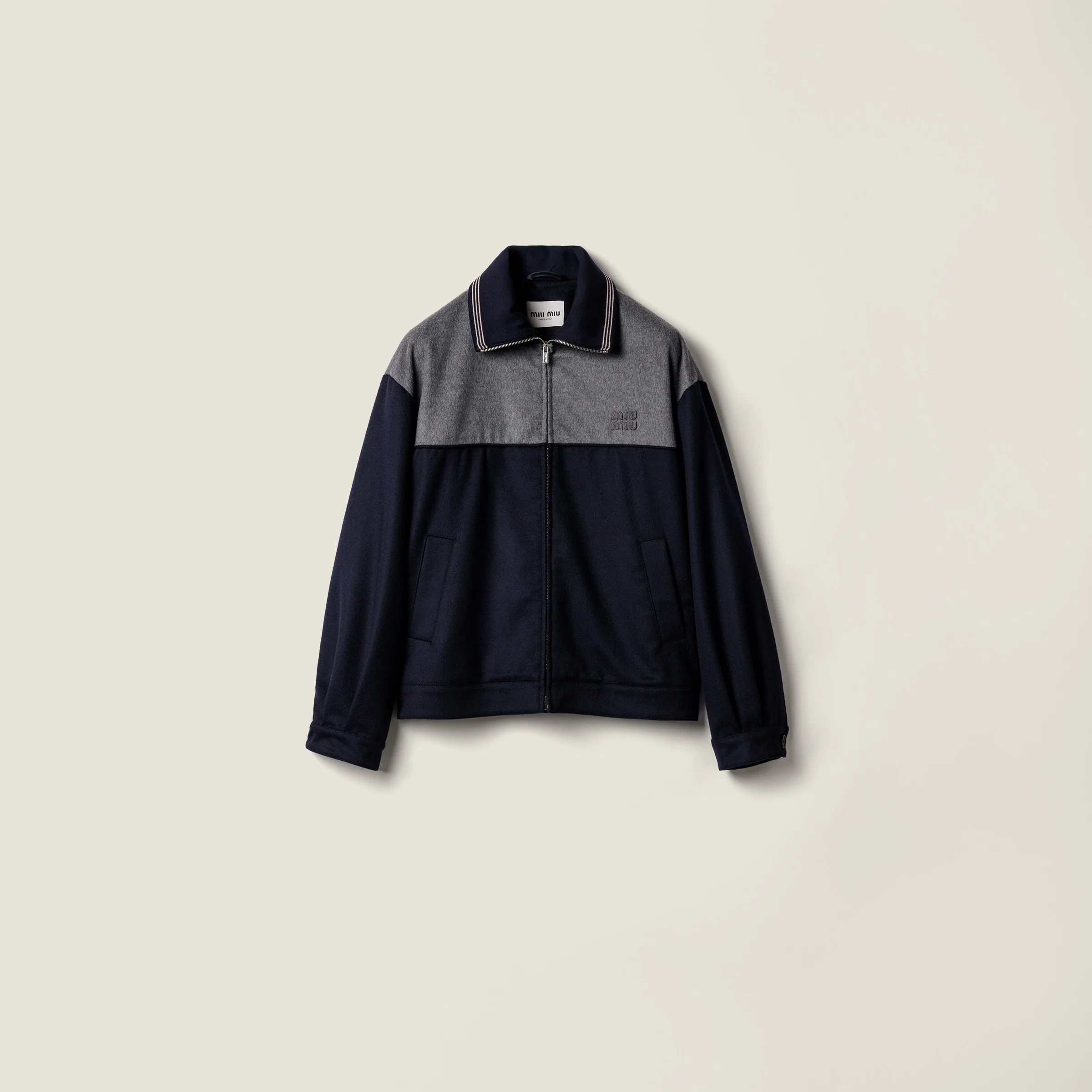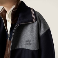 Sportswear references are combined with the classic texture of velour to create this blouson jacket that plays with color contrasts, relaxed proportions, and menswear elements. - Product code: ML1412_18ZL_F005R_S_OOO - Lined garment - Long sleeves - Ribbed knit collar, cuffs and hem - Zipper closure - Welt pockets - Embroidered logo - Imported - The model is 177 cm tall and wears a size 38 Height 65cm Materials Main material: 10% Cashmere 90% Virgin Wool
