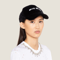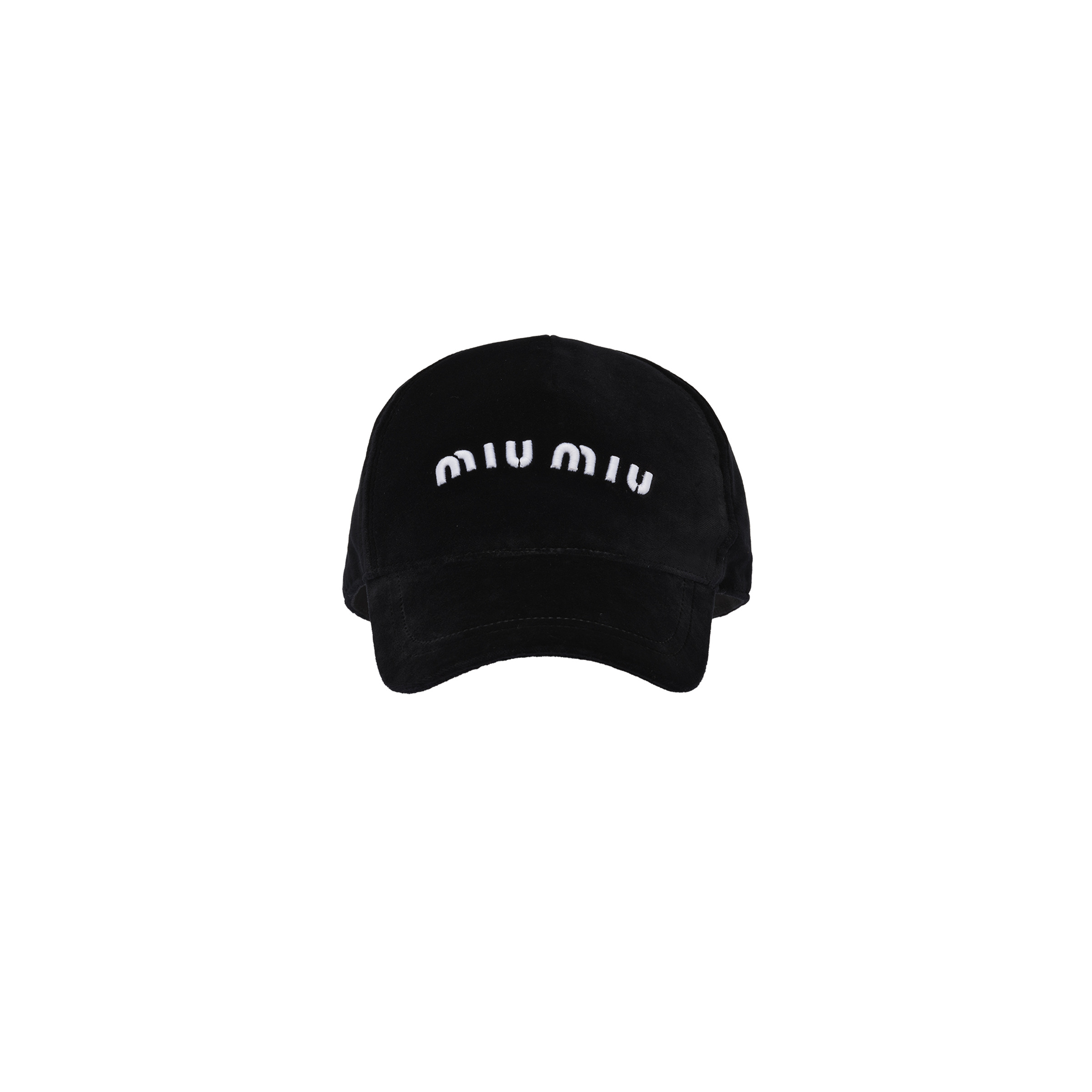 The classic baseball cap is given a contemporary, romantic update thanks to the use of velvet. $ Decorated with the embroidered Miu Miu logo, the accessory is lined in faille. - Product code: 5HC179_068_F0967 - Embroidered logo - Faille lining - Imported