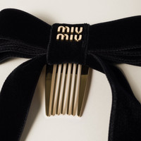 Velvet enhances the design of this hair clip, characterized by its delicete bow shape and iconic metal logo. - Product code: 5IF207_068_F0002 - With bow - With metal comb - Metal lettering logo - Imported Height 2.5cm Width 12.5cm