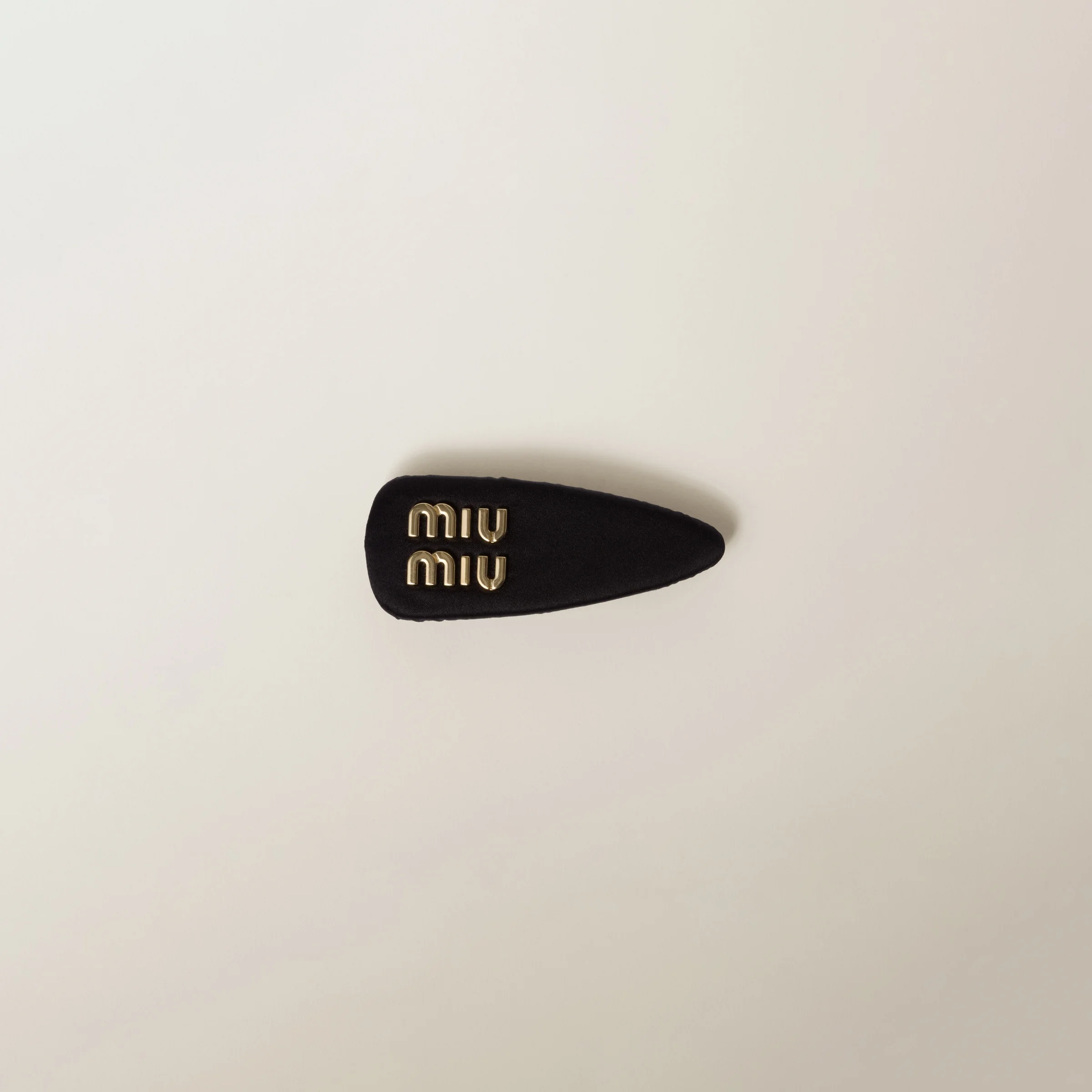 The Miu Miu logo in crystals stands out on this hair clip, creating plays of light and iridescent glimmers. - Product code: 5IF092_068_F0002 - Lettering logo in artificial crystals - Imported Height 3cm Width 8cm Materials Main material: Cotton