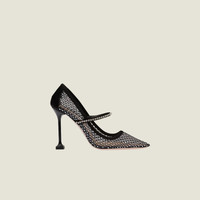 Elements of the jewelry world illuminate the sophisticated design of these pumps with crystal-studded Mary Jane strap. - Product code: 5I836D_3LJ3_F0002_F_105 - Upper with heat-sealed artificial crystals - Leather trim - Fabric logo label - Leather sole and rubber heel tip - 105 mm varnished heel - Imported