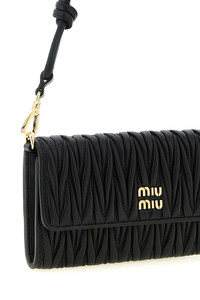 cod. 5MT025AFPPF0002 Wallet on chain in matelasse nappa leather, flap closure with snap button and front metal lettering logo, removable handle. Color: Black Size & Fit: W 19 x H 10 x D 3 cm Composition: 100% lamb leather (Ovis aries) Made in: Turkey