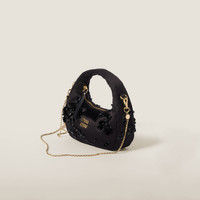 The iconic Wander bag gets a festive, glamorous twist in this mini version made of satin duchesse and embellished with elegant embroidery. - Product code: 5BP078_2CVJ_F0002_V_WRO - Embroidered flowers - Detachable chain shoulder strap, length 120 cm - Maximum drop 62 cm - Gold-tone hardware - Zipper closure - Duchesse lining - Metal lettering logo on the front - Imported Height 14cm Width 17cm Length 5.5cm Materials Main material: Silk