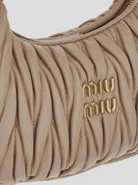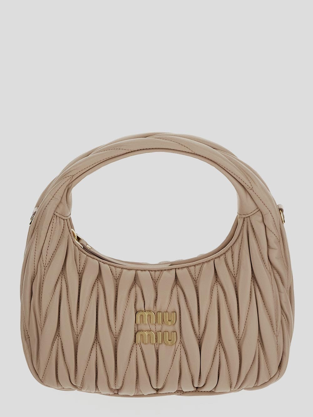 Miu Miu bag in leather with top handle, zip fastening, logo plaque and detachable shoulder strap. MORE INFORMATION Gender: Woman Color: pink Patterns: quilted Manufacturer Code: 5BC125VOOYN88F0236 Descriptive Color: cipria Composition: 100% Leather Made In: Italy Composition: leather Brand: Miu Miu Season Code: FW24 Measures: Height 17cm, Width 20cm, Depth 6cm Size Label: UNI