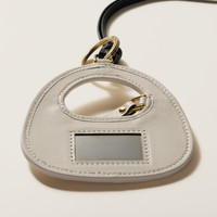 Distinctive elements of the Miu Miu wardrobe transform into precious accessories for bags, allowing for playful and personal combinations. This leather trick, inspired by the iconic Wander, adds a unique touch to the bag's design. - Product code: 5TL357_2CWB_F0009 - Matelasse motif - With ring - With leather strap - Metal lettering logo - Imported Height 9.5cm Width 10cm Materials Main material: Lambskin
