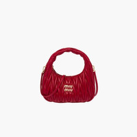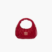 The Miu Wander bag is reinterpreted season after season, becoming an iconic accessory of Miu Miu collections. Made of matelassé nappa leather, the bag is characterized by the sophisticated, three-dimensional effect created by the refined workmanship. The hobo shape, blending retro inspirations and contemporary elegance, becomes a new synonym of modern femininity. - Matelassé motif - Leather shoulder strap, length 110 cm - Gold-tone hardware - Metal lettering logo on the front - Zipper closure - Cotton satin lining - This bag can hold a phone 16 cm x 7.8 cm x 0.76 cm in size - The small Miu Miu wallet can be conveniently placed in this bag Height 17 cm Width 20 cm Length 6 cm Product code 5BC125_N88_F0011_V_OOY
