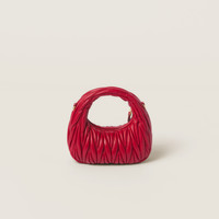 This mini version of the Wander matelasse nappa leather bag is characterized by the sophisticated three-dimensional effect created by the exquisite workmanship. The hobo shape, blending retro inspirations and contemporary elegance, becomes a new synonym of modern femininity. - Product code: 5BP078_AN88_F0011_V_OOO - Matelasse workmanship - Leather 110 cm shoulder strap - Gold-tone hardware - Metal lettering logo on the front - Zipper closure - Cotton satin lining - This bag can hold a phone 14cm x 7.1cm x 0.77cm in size - The Miu Miu card holder easily fits in this bag - Imported Height 14cm Width 17.5cm Length 5.5cm