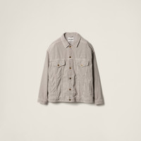 The soft texture of velvet is combined with the deliberate vintage look of this blouson jacket. The Miu Miu logo completes the design with an iconic note. - Product code: ML1009_131J_F073X_S_OOO - Oversized fit - Lined - Front button closure - Straight sleeves - Side pockets - Miu Miu embroidered logo - The product fits up to two sizes larger - Imported - The model is 180 cm tall and wears a size 38 Height 71cm Materials Main material: 100% Cotton