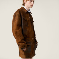 Waxed suede leather mini-skirt