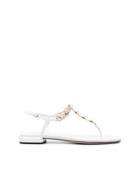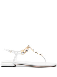 rhinestone-embellished thong sandals Highlights - White - Calf leather - Smooth grain - Rhinestone embellishment - Chain-link detailing - Buckle-fastening ankle strap - Branded footbed - Low stacked heel - Leather sole - This piece comes complete with a protective dust bag. Composition Outer: Calf Leather 100% Lining: Calf Leather 100% Sole: Calf Leather 100% SIZE & FIT Measurement HEEL 0.98 in(2.5 cm)
