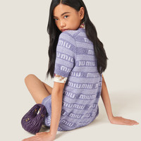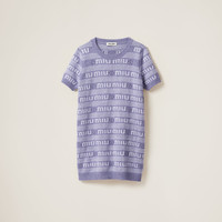 The soft, cozy feel of wool and cashmere offers a new interpretation of the classic sheath dress. The Miu Miu intarsia logo completes the garment with an iconic and distinctive touch. - Product code: MMA806_138E_F0230_S_232 - Short sleeves - Intarsia knit - Sheath dress fit - Ribbed knit neck and hem - Semi-raglan shoulder - Intarsia logo - Imported - The model is 176 cm tall and wears a size 38 - Height: 80cm