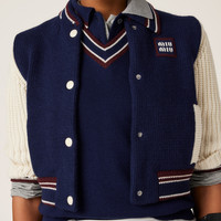 Tennis inspirations define the style of this wool cashmere vest. Its boxy fit and iconic logo patch add versatility to this knit piece, embodying a relaxed yet stylish attitude. - Product code: MMV250_158Z_F0124_S_OOO - Boxy fit - Plain knit - V-neck - Semi-raglan shoulder - Ribbed knit hem - Knit logo patch - Imported - The model is 178 cm tall and wears a size 38 Height 55cm Materials Main material: 30% Cashmere 70% Virgin Wool