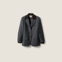 The classic pinstripe pattern is reinterpreted through the lines and details of this jacket, which features a masculine fit and stands out for its iconic embroidered logo and distinctive contrasting knit collar. - Product code: MH2005_174X_F0480_S_OOO - Classic fit - Lined garment - Classic lapel - Front button closure - Flap pockets - Embroidered logo - Imported - The model is 178 cm tall and wears a size 38 Height 73cm Materials Main material: 100% Virgin Wool