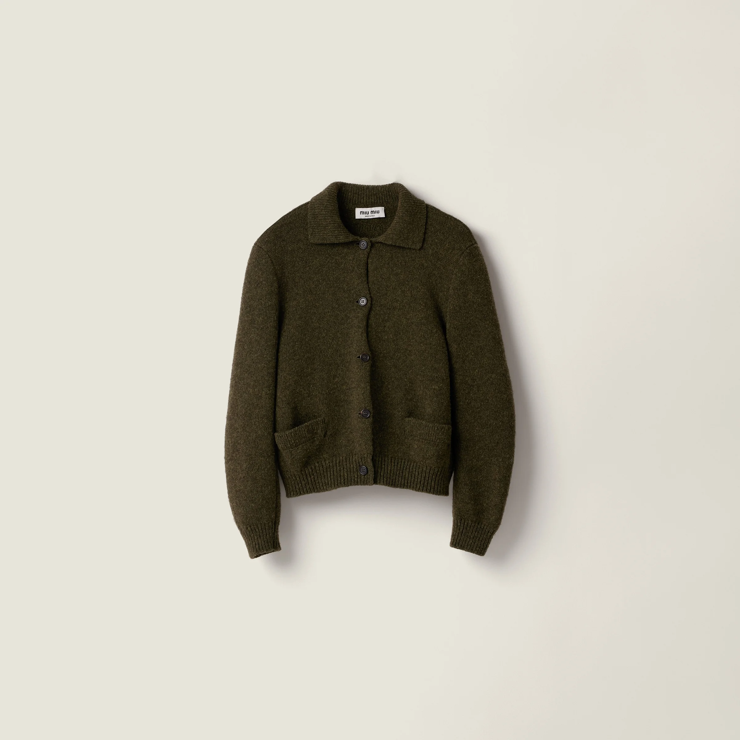 A sensual study of shapes comes to life in the lines of this soft wool cardigan that adapts to the body's curves, revealing the bold character of layering and femininity with refined, modern contrasts. - Product code: MMJ151_18H1_F0161_S_OOO - Plain knit - Slim-fit silhouette - Long sleeves - Ribbed-knit collar - Regular shoulder - Ribbed knit cuffs and hem - Front button closure - Flapped pockets - Lettering logo - Imported - The model is 178 cm tall and wears a size 38 Height 53cm Materials Main material: 100% Virgin Wool