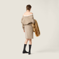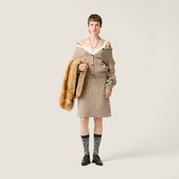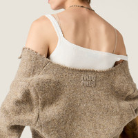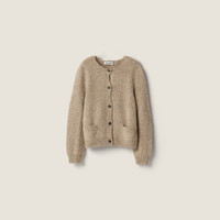 A sensual study of shapes comes to life in the lines of this soft wool cardigan that adapts to the body's curves, revealing the bold character of layering and femininity with refined, modern contrasts. - Product code: MMJ148_18H1_F0065_S_OOO - Plain knit - Slim-fit silhouette - Long sleeves - Round neck - Regular shoulder - Ribbed knit cuffs and hem - Front button closure - Flapped pockets - Lettering logo - Imported - The model is 177 cm tall and wears a size 38 Height 52cm Materials Main material: 100% Virgin Wool