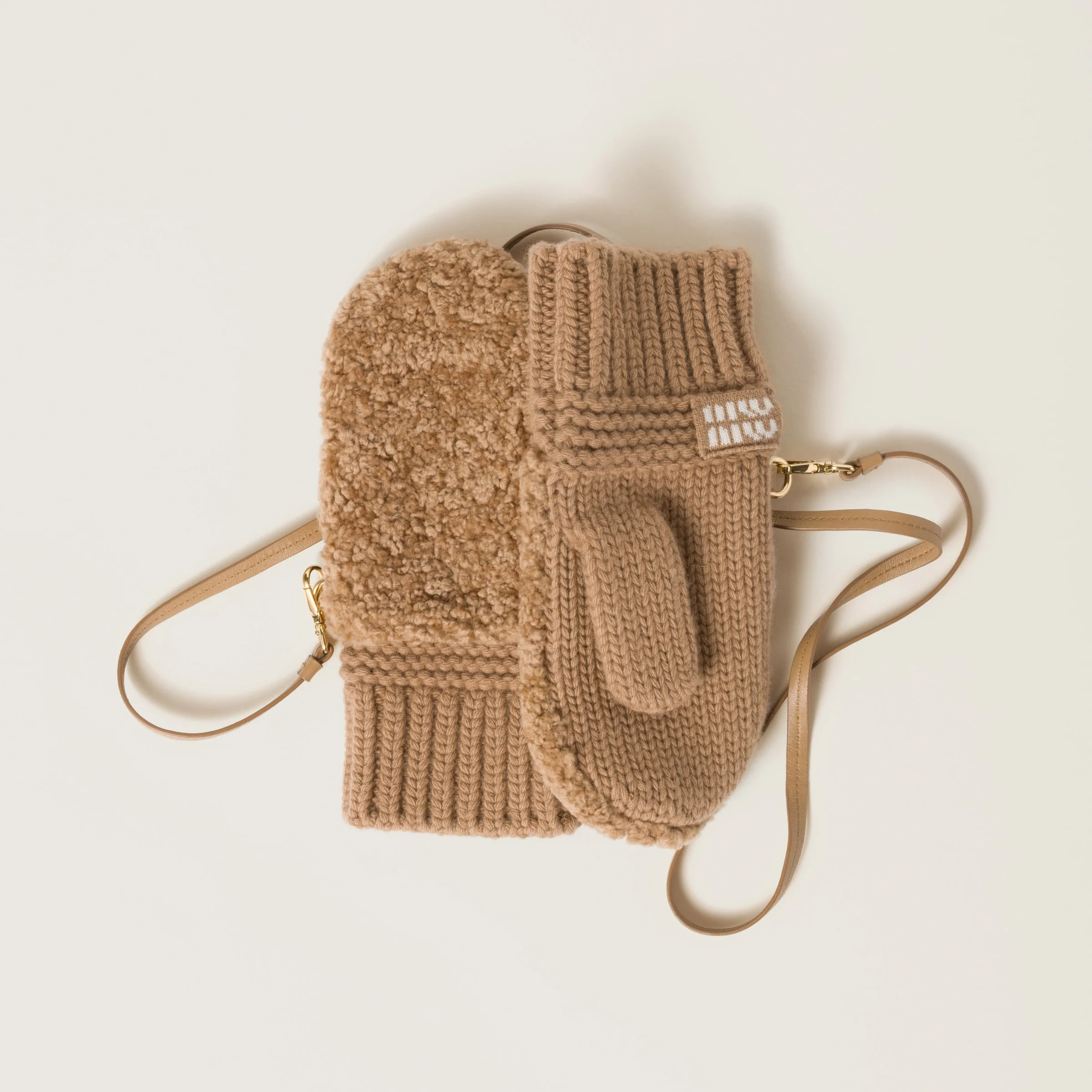 These wool, cashmere and shearling mittens are characterized for the leather glove strap, the contrast in texture, and the visible logo in a contrasting color. - Product code: 5GG203_2CSR_F0040 - Knit wool palm - With leather glove strap - Visible logo - Imported Materials Main material: Virgin Wool