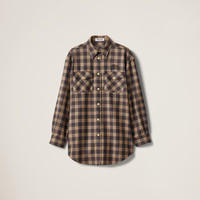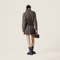 The tartan motif, unmistakable element of vintage experimentation, characterizes this oversized wool shirt. The Miu Miu logo embroidered on the front adds an iconic touch to this garment, making it the emblem of the contrast between men's and women's wardrobe. - Product code: MK1906_16DO_F0040_S_OOO - Shirt collar - Front button closure - Sleeves with shirt cuff - Embroidered logo - Imported - The model is 178 cm tall and wears a size 38 Height 83cm Materials Main material: 100% Virgin Wool