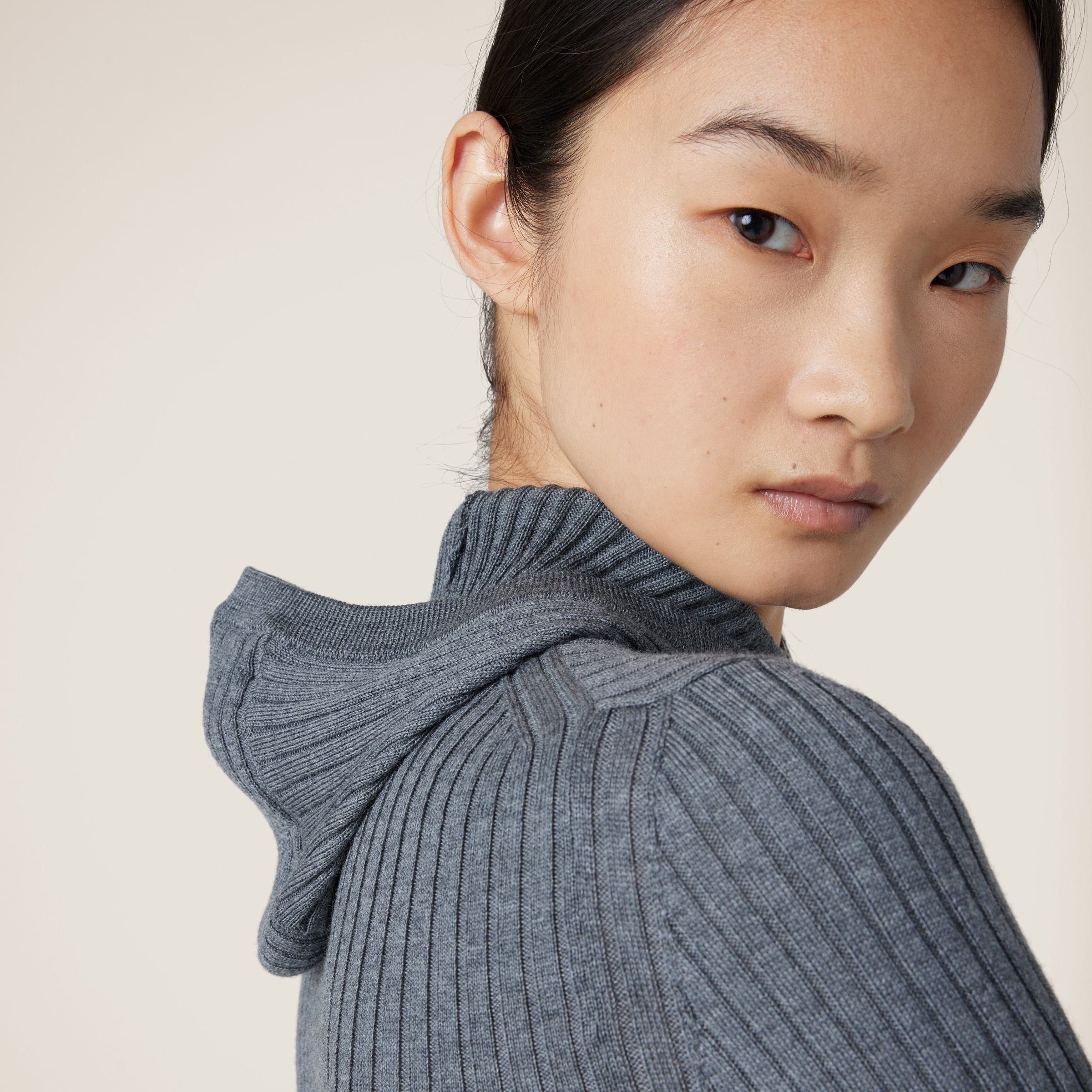 Elegant simplicity defines this wool turtleneck jumper. The tight fit and ribbed pattern make it suitable for layering. The logo patch and the distinctive collar elevate the design, adding a unique touch. - Product code: MMR437_15Z8_F0480_S_OOO - Bodycon fit - Long sleeves - Ribbed motif - Ribbed collar - English shoulder - Ribbed cuffs and hem - Logo patch - Imported - The model is 178 cm tall and wears a size 38 Height 63cm