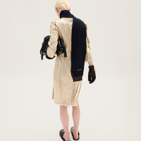 The elegance of past times inspires the design of this crepe satin dress, featuring a wrinkle effect and a sophisticated slit at the back. - Product code: MF5558_15UK_F0F24_S_OOO - Sheath dress fit - Bateau neckline - Back hook and zip closure - Three-quarter length sleeves - Embroidered logo - Slit at back - Raw cut bottom hem - Gaping at hem - Imported - The model is 178 cm tall and wears a size 38 Height 103cm