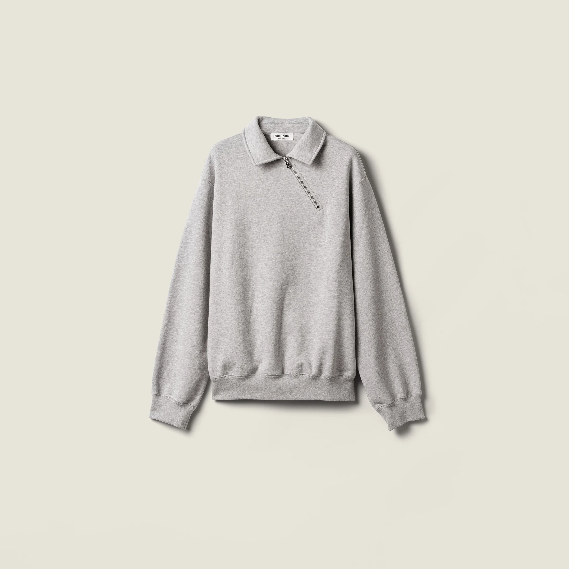 The classic cotton fleece jacket is reinterpreted through sporty references, runway details, and a relaxed fit to create a versatile garment that is perfect for casual looks. - Product code: MJLA04_18S8_F0031_S_OOO - Oversized fit - Unlined garment - Polo collar - Front zipper closure - Long sleeves with ribbed knit cuffs - Straight ribbed knit hem - Embroidered logo - Imported - The model is 179 cm tall and wears a size 38 Height 70cm Materials Main material: 100% Cotton