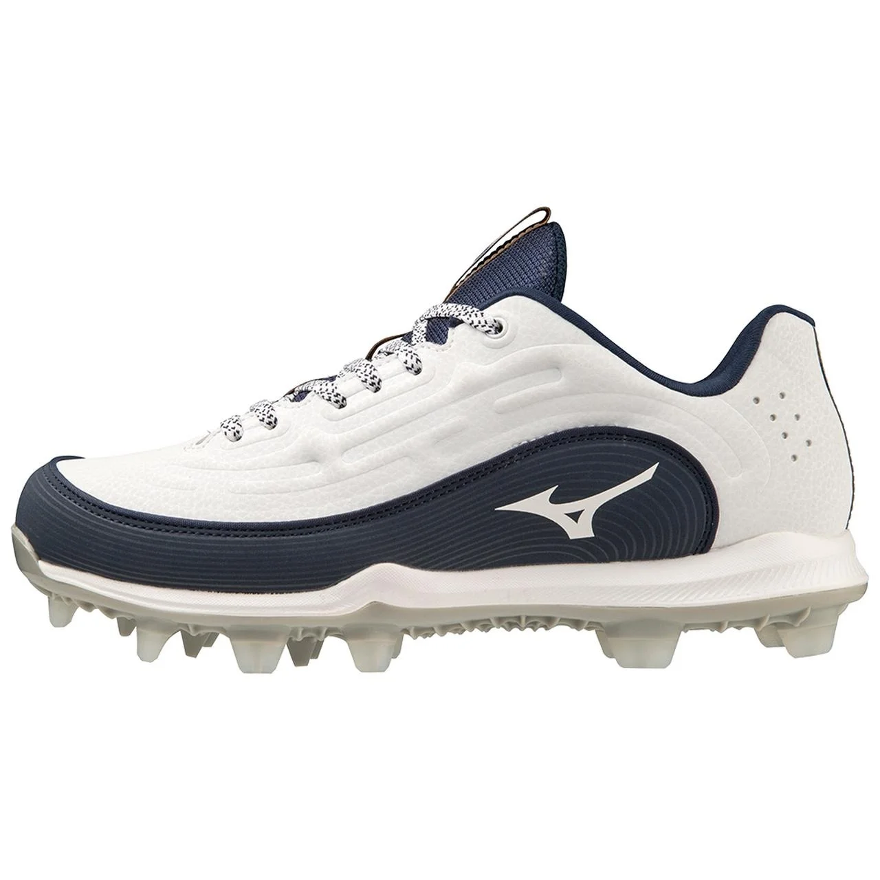 The 9-Spike Advanced Finch Elite 6 Low TPU is Gender Engineered for softball-specific movements. Translucent I-Shaped TPU studs provide a unique accent that also increases traction on multiple surfaces. The ribbed construction of the Mizuno C-Flex Outsole is a combination of enhanced stability, flexibility, and traction, while also reducing stud pressure to provide superior comfort during long games. The new 2 layered insole provides maximum step in comfort. - Mizuno C-Flex Outsole: Mizuno's next innovation in outsole technology using a lightweight, rib construction, as well as a symmetric stud arrangement for enhanced stability, flexibility, and traction, while also providing increased comfort with reduced stud pressure. - Translucent I-Shaped TPU Studs: Provide increased traction on multiple surfaces - Padded Bootie Tongue: For superior fit and comfort. - MIZUNO WAVE®: The MIZUNO WAVE® plate disperses energy from impact to a broader area providing a stable platform and a superior cushioning. - Jennie Finch Collection: Created in collaboration with Jennie Finch with the softball player's specific needs in focus. - U4icX Strobel Lasting Board: Ensures a comfortable underfoot feel. - Weight: 8.6 oz (Size 8)