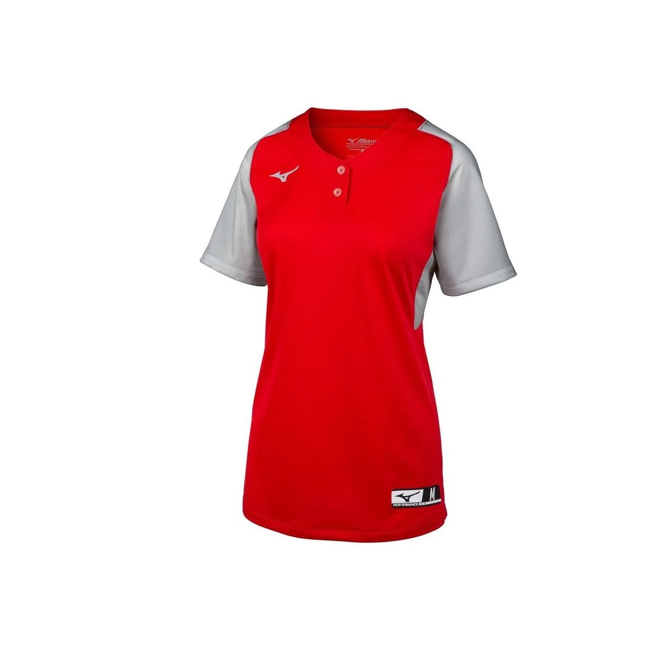 Mizuno's AEROLITE 2-Button Softball Jersey combines the lightweight and durable features required to perform at the highest level. Raglan sleeve construction increases range of motion. Added pant grey accent colors make it the perfect jersey for any winning uniform. - Lightweight polyester mesh construction - Mizuno DryLite? Technology: Exclusive fabric technology that creates rapid evaporation to help keep you dry and comfortable. - 2-button placket construction