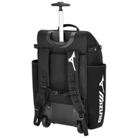 Elevate your game with the NEW Mizuno Pro Wheel Batpack, the ideal companion for baseball and softball players. This well-designed batpack offers features that make your time on the field more convenient. Safeguard your valuables, stay organized with the spacious main compartment, and carry up to four bats. With heavy-duty wheels and a telescopic handle, you can easily transport your gear, while a ventilated cleat compartment keeps your cleats fresh. Use the exterior loop buckle for securing your glove or helmet. The Mizuno Batpack ensures you're always ready to excel on the field. - Ventilated Footwear Storage Compartment: Separates shoes from rest of bag to protect and aerate your footwear. - Auxiliary Loops: Strategically placed to hang water bottle or other items for storage. - 4 Bat Sleeves: Store up to 4 bats or use as a water bottle pouch. - Fleece Lined Valuables Pocket - Molle Strap Attachment System: Allows for easy removal of the Mod Pouch and provides an additional level of customization - easily attach other accessories with molle strap-compatible attachment clips - Durable off road wheels: Holds up to the rigors of a season. - Telescopic Handle with SoftGrip - Stow Away Arm Straps - Running Boards : Gives bag premium stability and durability. - Dual J Hooks : Conveniently allows for fence hanging while on field. - California Prop 65 Warning: WARNING: This product can expose you to chemicals, which are know to the state of California, to cause cancer. For more information go to www.P65Warnings.ca.gov