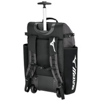 Elevate your game with the NEW Mizuno Pro Wheel Batpack, the ideal companion for baseball and softball players. This well-designed batpack offers features that make your time on the field more convenient. Safeguard your valuables, stay organized with the spacious main compartment, and carry up to four bats. With heavy-duty wheels and a telescopic handle, you can easily transport your gear, while a ventilated cleat compartment keeps your cleats fresh. Use the exterior loop buckle for securing your glove or helmet. The Mizuno Batpack ensures you're always ready to excel on the field. - Ventilated Footwear Storage Compartment: Separates shoes from rest of bag to protect and aerate your footwear. - Auxiliary Loops: Strategically placed to hang water bottle or other items for storage. - 4 Bat Sleeves: Store up to 4 bats or use as a water bottle pouch. - Fleece Lined Valuables Pocket - Molle Strap Attachment System: Allows for easy removal of the Mod Pouch and provides an additional level of customization - easily attach other accessories with molle strap-compatible attachment clips - Durable off road wheels: Holds up to the rigors of a season. - Telescopic Handle with SoftGrip - Stow Away Arm Straps - Running Boards : Gives bag premium stability and durability. - Dual J Hooks : Conveniently allows for fence hanging while on field. - California Prop 65 Warning: WARNING: This product can expose you to chemicals, which are know to the state of California, to cause cancer. For more information go to www.P65Warnings.ca.gov