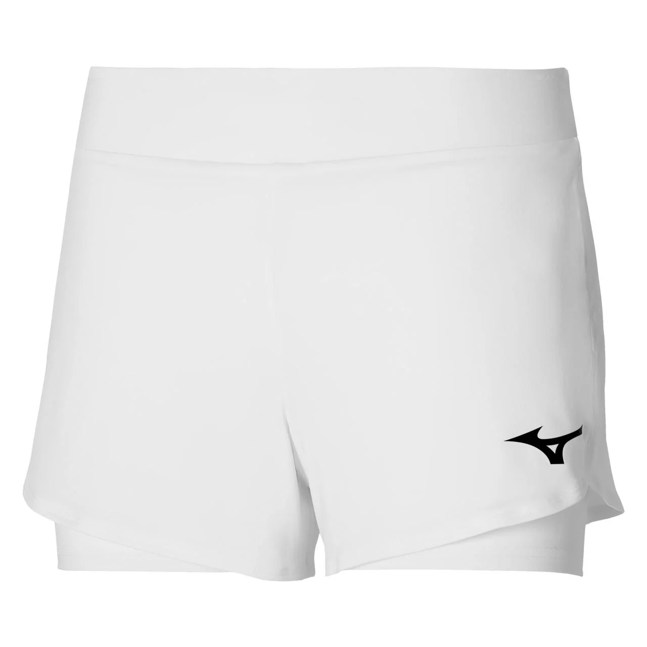 The Women's Flex Short is a performance tennis and pickleball short constructed of a lightweight polyester fabric designed to stretch for elevated comfort and maneuverability. Built in tights provide support. - Stretch fabric for greater freedom of movement - Inner tight - MIZUNO RUNBIRD® logo on front