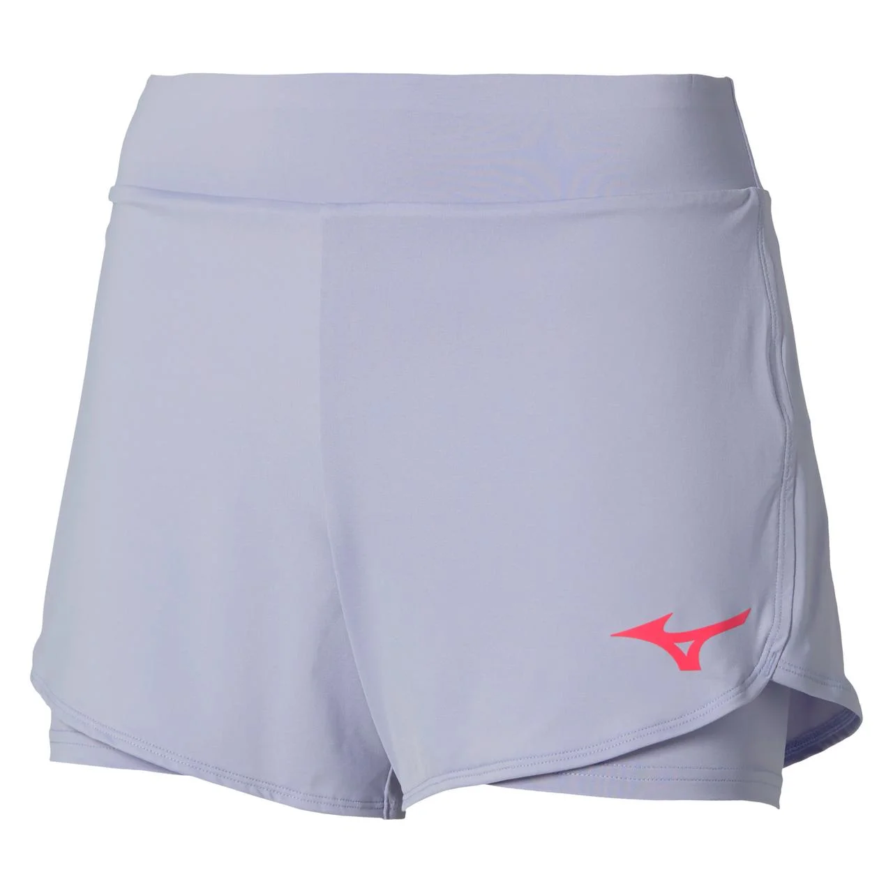The Women's Flex Short is a performance tennis and pickleball short constructed of a lightweight polyester fabric designed to stretch for elevated comfort and maneuverability. Built in tights provide support. Body fit. - Inner tight - Stretch fabric for greater freedom of movement - MIZUNO RUNBIRD® logo on front - Lightweight fabric: Allows athletes to feel cool during play.