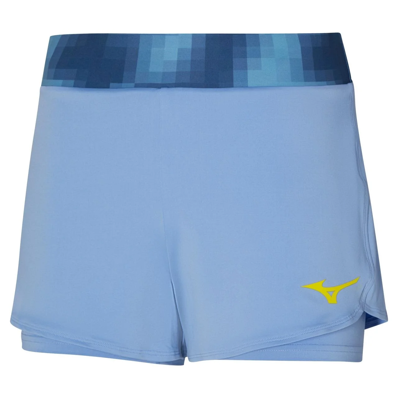 The Women's Flex Short is a performance tennis and pickleball short constructed of a lightweight polyester fabric designed to stretch for elevated comfort and maneuverability. Built in tights provide support. Body fit. - Inner tight - Stretch fabric for greater freedom of movement - MIZUNO RUNBIRD® logo on front - Lightweight fabric: Allows athletes to feel cool during play.