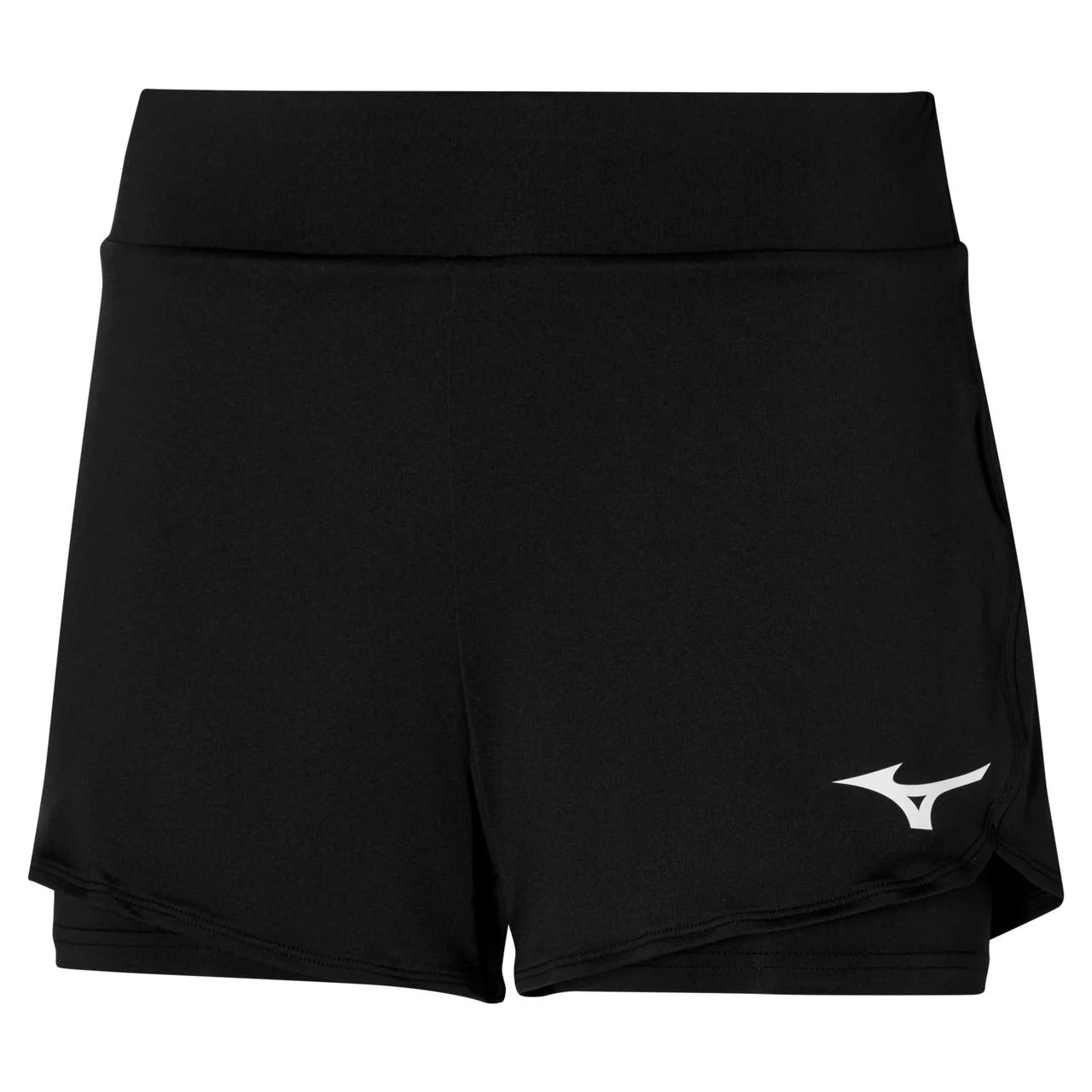 The Women's Flex Short is a performance tennis and pickleball short constructed of a lightweight polyester fabric designed to stretch for elevated comfort and maneuverability. Built in tights provide support. Body fit. - Inner tight - Stretch fabric for greater freedom of movement - MIZUNO RUNBIRD® logo on front - Lightweight fabric: Allows athletes to feel cool during play.