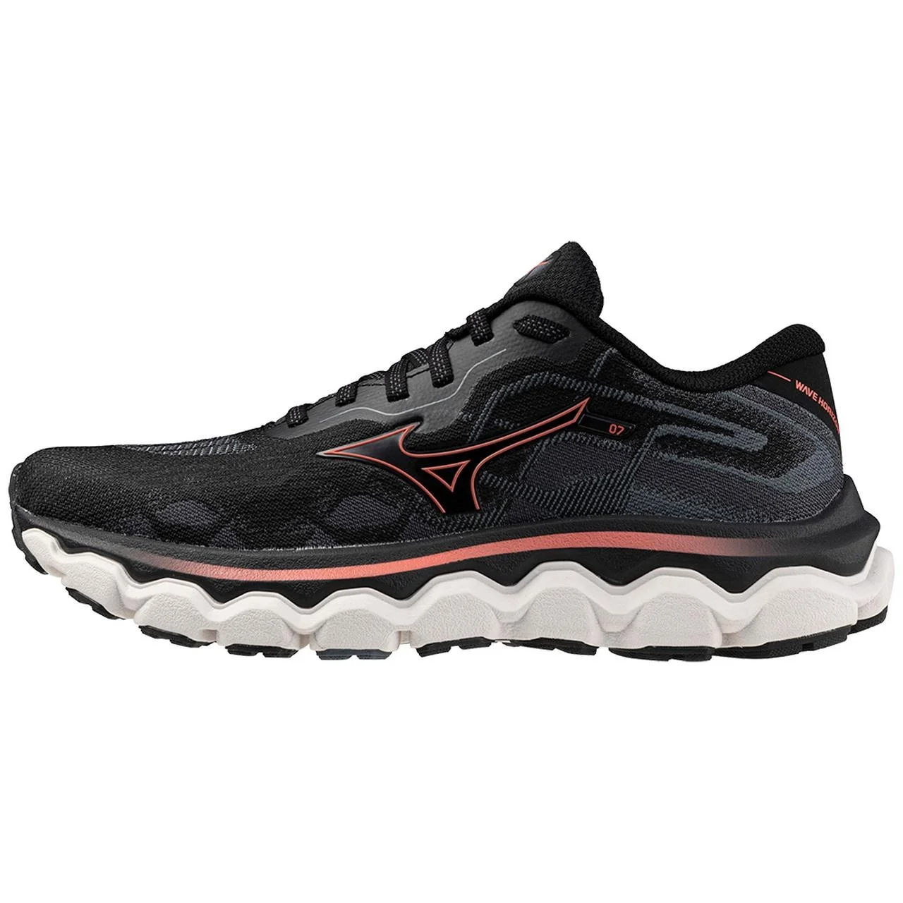 Your runs are looking up with the Wave Horizon 7. It’s all thanks to the floating feeling you get from the additional 2mm of cushion and MIZUNO ENERZY Foam, while the asymmetrical foam wave and rubber wall supply even greater stability than before. - MIZUNO ENERZY CORE: New advanced midsole material, delivering the most resiliency and softness. It improves comfort and adds spring to drive optimum performance. - MIZUNO ENERZY (FOAM): Offering versatility in its application, while still maintaining softness and resilience. It will help enhance performance capabilities. - Foam Wave: A Wave of comfort made of 2 layers of foam. Top layer is U4icX and bottom layer Mizuno Enerzy - Foam Wave: A Wave of comfort made of 2 layers of foam. Top layer is U4icX and bottom layer Mizuno Enerzy - Smooth Stretch Woven: Designed to control stretching direction for running motion and performance. Smooth Stretch Woven adapts to your foot and keeps your foot position correct. - Gusseted Tongue: Stretchy tongue lining that hugs the foot securely and comfortably without any stress. - X10 Outsole: Durable carbon rubber that allows for longer wear. - Eco Friendly Materials: Recycled materials - Category: Support - Drop: 8mm - Stack Height: Forefoot 33mm / Heel 41mm - Weight: 9.9 oz (Size 8)