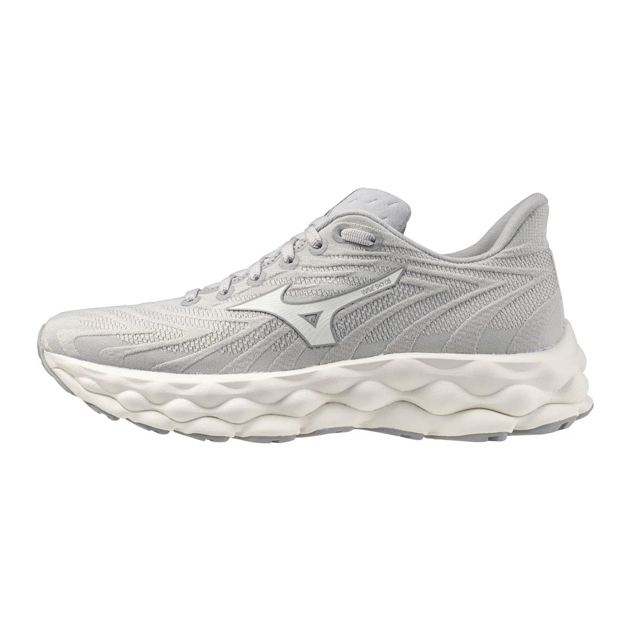 Reaching beyond is no obstacle when you're floating in the Wave Sky 8. Comfort is key thanks to the innovative MIZUNO ENERZY NXT providing an even softer and more responsive experience than before. The new upper provides a comfortable secure fit and is even lighter than its predecessor for the ultimate floating feeling. - Foam Wave: A Wave of comfort made of 2 layers of foam. Top layer is U4icX and bottom layer Mizuno Enerzy - MIZUNO ENERZY NXT: The next generation of MIZUNO ENERZY midsole material. Designed to maximize energy return and cushioning for optimum performance. - X10 Outsole: Durable carbon rubber that allows for longer wear. - Eco Friendly Materials: Recycled materials - Gusseted Tongue: Stretchy tongue lining that hugs the foot securely and comfortably without any stress. - MIZUNO ENERZY (FOAM): Offering versatility in its application, while still maintaining softness and resilience. It will help enhance performance capabilities. - Category: Neutral - Drop: 8mm - Stack Height: Forefoot 33mm / Heel 41mm - Weight: 8.3 oz (Size 8)