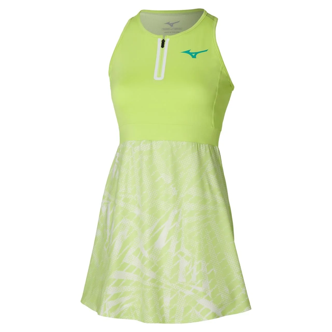 The Women's Dress is a lightweight performance tennis and pickleball dress constructed from a soft polyester fabric designed to stretch for ultimate comfort and maneuverability. Back panel design includes Dry Aeroflow technology to elevate air flow for better moisture management and breathability, keeping you cool throughout the match. Seasonal graphic on front including the stretch waistband. Body fit. - Soft touch elastic waistband - Breathable High Performance Fabric - Dry Aeroflow: Prevents the build up of sweat film inside the garment, maintaining breathability and keeping you cool. - Stretch fabric for greater freedom of movement - MIZUNO RUNBIRD® logo on front