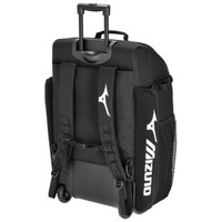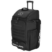 The NEW Samurai Select Wheel Batpack is a favorite among Mizuno Pros due to its fantastic features for gear storage and protection. It comes with a special compartment for your glove, ample space for all your gear, extra pockets on the sides, and a ventilated storage compartment for your cleats. You can easily hang it on a fence with the dual J hooks, and its sturdy wheels and running boards provide both stability and durability, meeting the needs of catchers. - Dual J Hooks : Conveniently allows for fence hanging while on field. - Durable off road wheels: Holds up to the rigors of a season. - Molded Glove Compartment : Provides safe storage for your glove or catcher's mitt. - Multiple Storage Compartments : Plenty of added storage options to make packing easy. - Ventilated Footwear Storage Compartment: Separates shoes from rest of bag to protect and aerate your footwear. - Running Boards : Gives bag premium stability and durability. - Screened MIZUNO RUNBIRD® Logo - 2 Bat Sleeves: Store up to 2 bats or use as a water bottle pouch. - Molle Strap Attachment System: Allows for easy removal of the Mod Pouch and provides an additional level of customization - easily attach other accessories with molle strap-compatible attachment clips - Stow Away Arm Straps - California Prop 65 Warning: WARNING: This product can expose you to chemicals, which are know to the state of California, to cause cancer. For more information go to www.P65Warnings.ca.gov