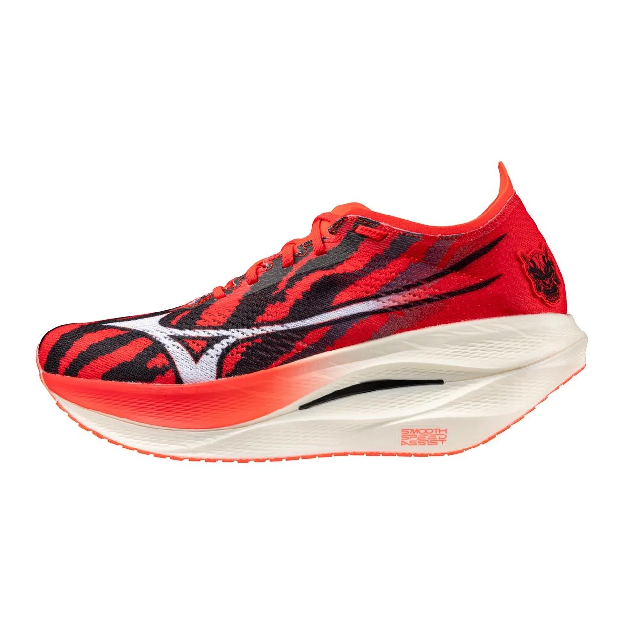 Experience unmatched speed evolution with the Wave Rebellion Pro 3: now featuring a recalibrated heel geometry for ridiculously smooth landings via SMOOTH SPEED ASSIST, powered by MIZUNO ENERZY XP for a highly cushioned and responsive feel, while a minimalist upper offers a lighter, more breathable fit with terrific lockdown. Redefine your limits and reach your goals in the shoe designed to propel you towards unparalleled performance. - MIZUNO WAVE®: The MIZUNO WAVE® plate disperses energy from impact to a broader area providing a stable platform and a superior cushioning. - Internal Support Strap: Securely holds mid-foot area. - Eco Friendly Materials: Recycled materials - Triple Shoelace Loop: Keeps tongue in correct position while running. - Engineered Mesh Upper: Both breathable and durable for high performance. - G3 Outsole: Lightweight G3 outsole reduces weight and increases traction for a grippy and efficient ride. - Smooth Speed Assist: Mizuno's signature geometry that is designed for maximum performance. The significant heel bevel encourages an efficient midfoot landing, the midfoot contact point supports the calf and the aggressive forefoot rocker delivers a smooth and propulsive transition. - Carbon Fiber Infused Nylon MIZUNO WAVE® Plate: Carbon infused Wave Plate provides maximum resilience to stabilize the midsole, and offers Mizuno’s signature stable ride thanks to the Wave geometry. - MIZUNO ENERZY LITE - Category: Speed - Drop: 4mm - Stack Height: Forefoot 36mm / Heel 40mm - Weight: 7.9 oz (Size 9)