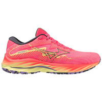 Slip on the Wave Rider 27 and experience the balance of superior drive and immaculate comfort. This model is upgraded with an even lighter upper and refined heal fitting creating a perfect formula for your new go-to everyday running shoe. - MIZUNO ENERZY (FOAM): Offering versatility in its application, while still maintaining softness and resilience. It will help enhance performance capabilities. - MIZUNO WAVE®: The MIZUNO WAVE® plate disperses energy from impact to a broader area providing a stable platform and a superior cushioning. - X10 Outsole: Durable carbon rubber that allows for longer wear. - Engineered Mesh Upper: Both breathable and durable for high performance. - Eco Friendly Materials: Recycled materials - Category: Neutral - Drop: 12mm - Stack Height: Forefoot 26mm / Heel 38mm - Weight: 8.3 oz (Size 8)