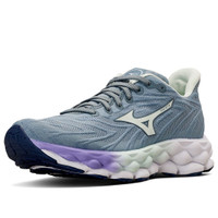 PRODUCT INFORMATION Model No: J1GD240271 Closure: Lacing Release Date: 2025-01-20 Thickness: Regular Sole Colorway: Misty Blue Purple Heel Type: Flat heel Upper: Low Top Color: blue Series: Wave Sky Nickname: Misty Blue Purple Occasion: running