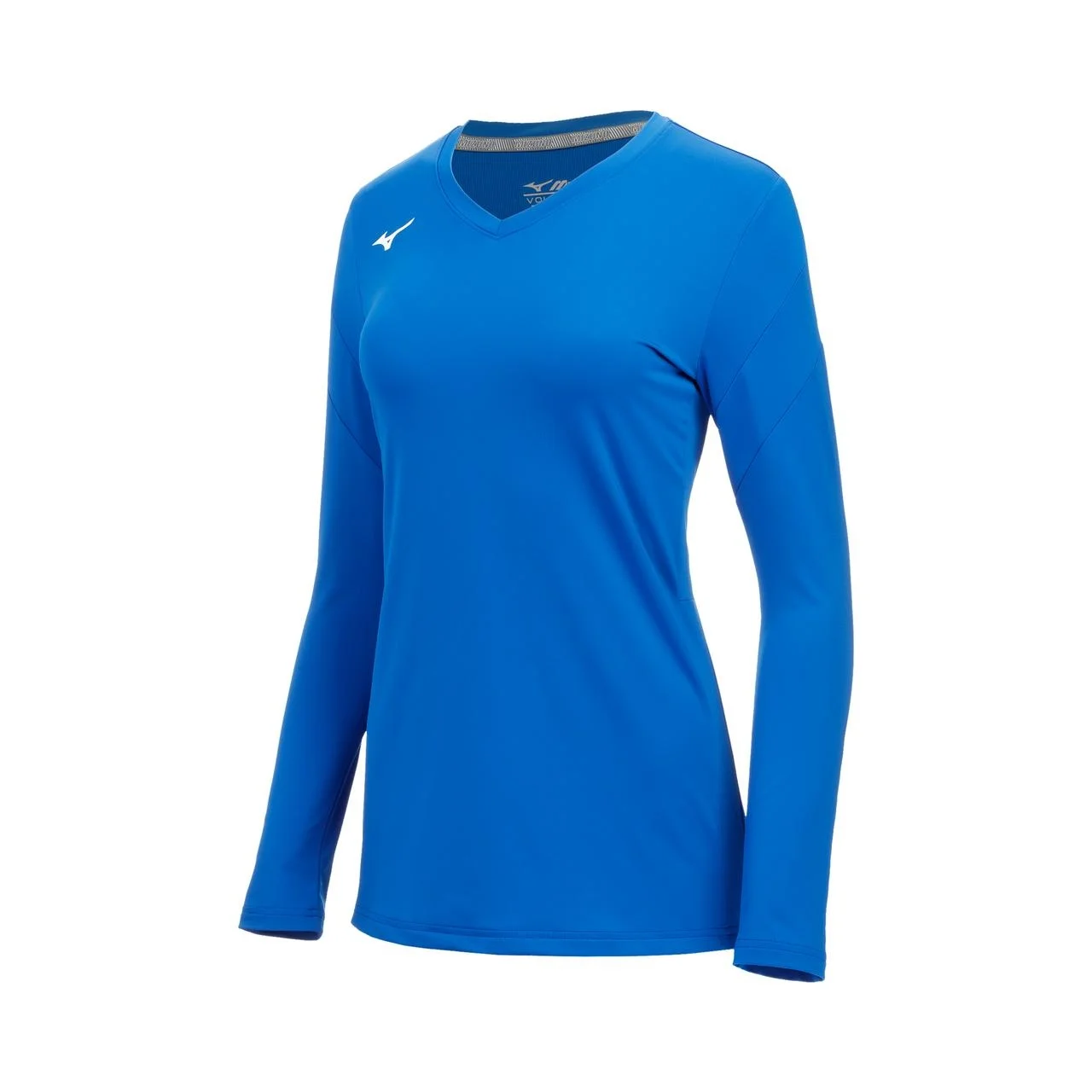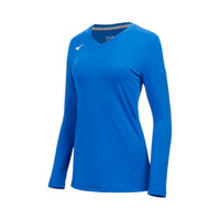 The Women's Balboa 6 Long Sleeve Volleyball Jersey is a great-fitting, solid colored volleyball jersey at a price that will fit your budget. This garment features lightweight and durable CD polyester fabric to help prevent color bleeding and detailed with flex panels at the shoulder for an elite look when you step on the court. - Athlete specific pattern: Allows for ease of movement - Flatlock construction - Hemmed bottom - Lightweight fabric: Allows athletes to feel cool during play. - Moisture wicking - Tagless care label - Tailored fit allows for greater freedom of movement during play - Curved shirttail hem - Mizuno RunBird logo - V-neck style - Cationic dyed fabric: Promotes easy wash and wear - Compliant "solid colored" jersey under Libero jersey regulations for NCAA, USAV, and NFHS.