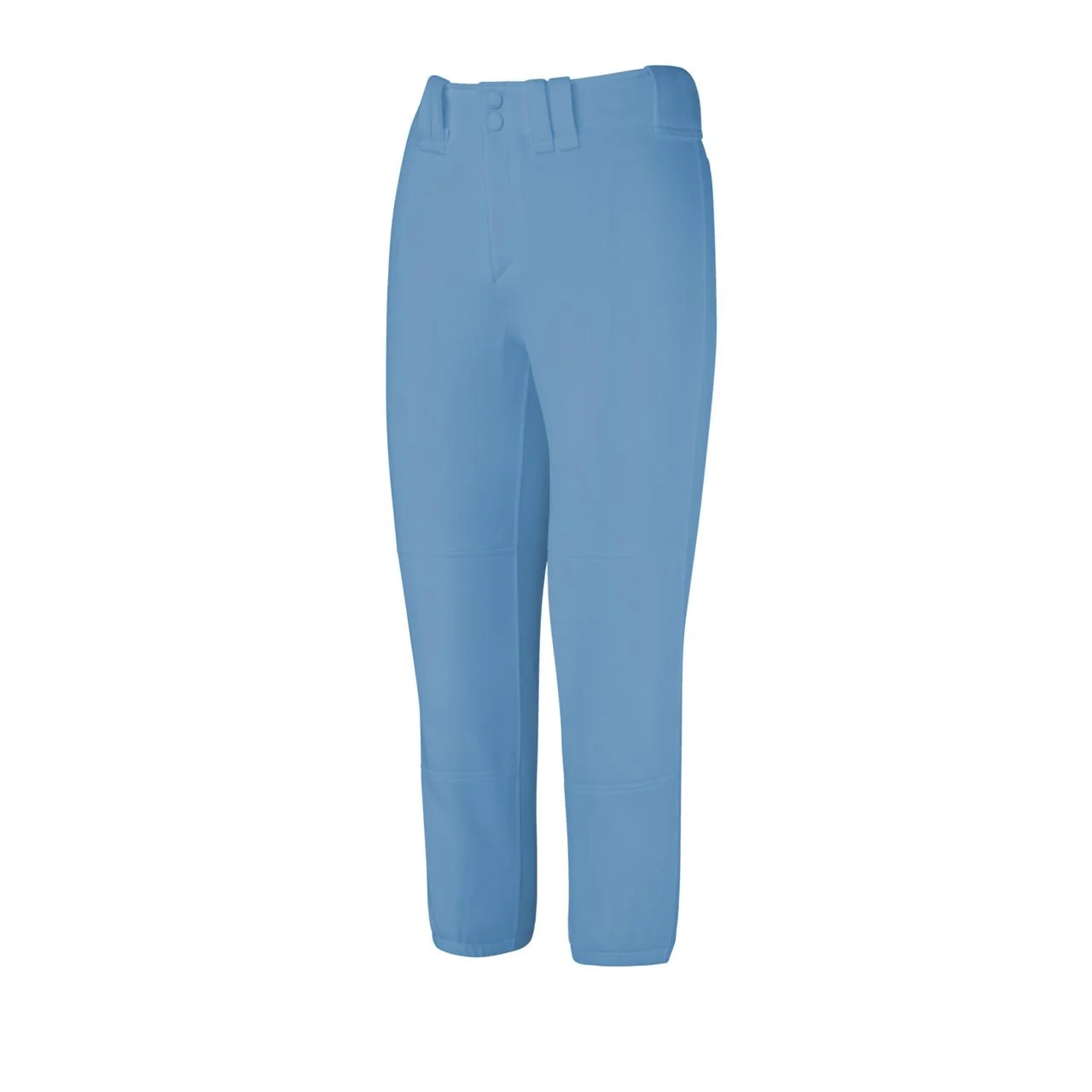 Performance at the highest level the Mizuno Womens Belted Softball Pant is designed exclusively for women. Known as one of the most durable softball pants on the market! - Low rise fit exclusive for women - Double Knit: Lightweight and durable fabric construction - Tunnel-belt loop waist - Fly front with extended two-snap closure - Set-in back pockets with button closure - Double Knee: Dual-layer knee construction for added protection. - Embroidered Logo - DRYLITE: Using a dual filament yarn construction to transport excess moisture away from the body to create a comfortable and dry body microclimate for best performance.