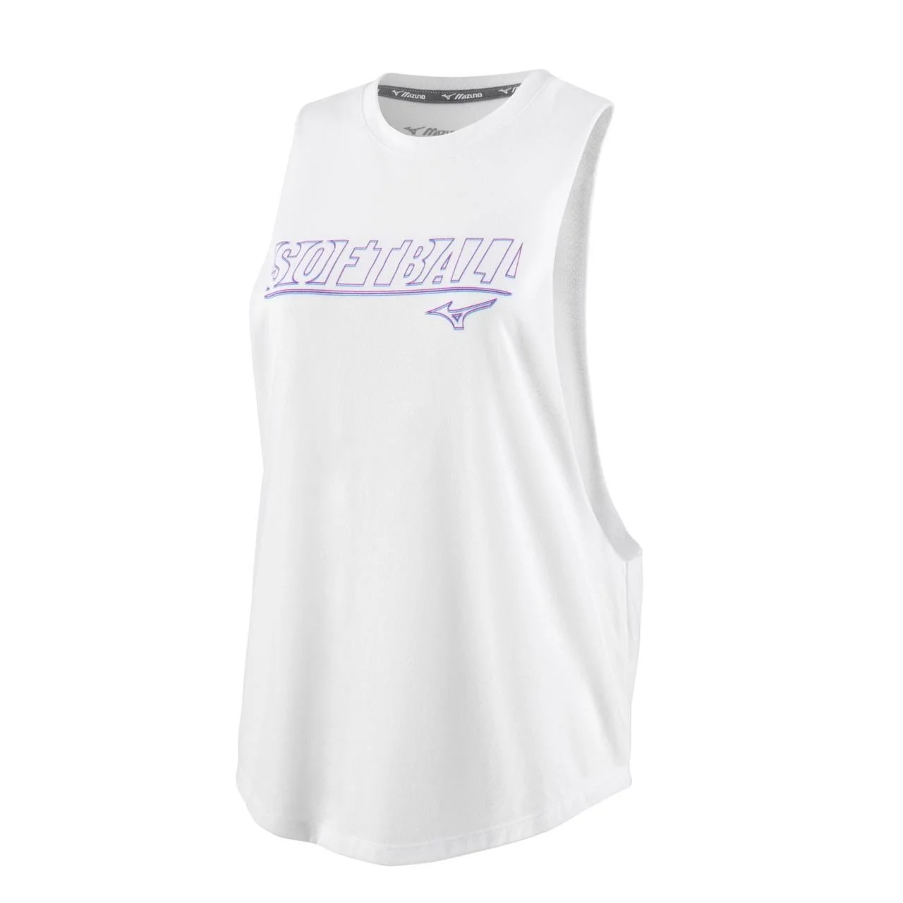 The Women's Muscle Graphic Tank features lightweight, heathered fabric that makes it a great multi-purpose piece. For training or practice the deep sleeveless design provides added cooling and soft touch front print shows your love for the game. - Racerback Style Tank: A comfortable, athletic fit. Allows for full upper body movement without restriction during weightlifting, training or any competition. - Great to use as performance beachwear, for indoor or outdoor practice and competition, or as a lifestyle tank - MIZUNO RUNBIRD® logo