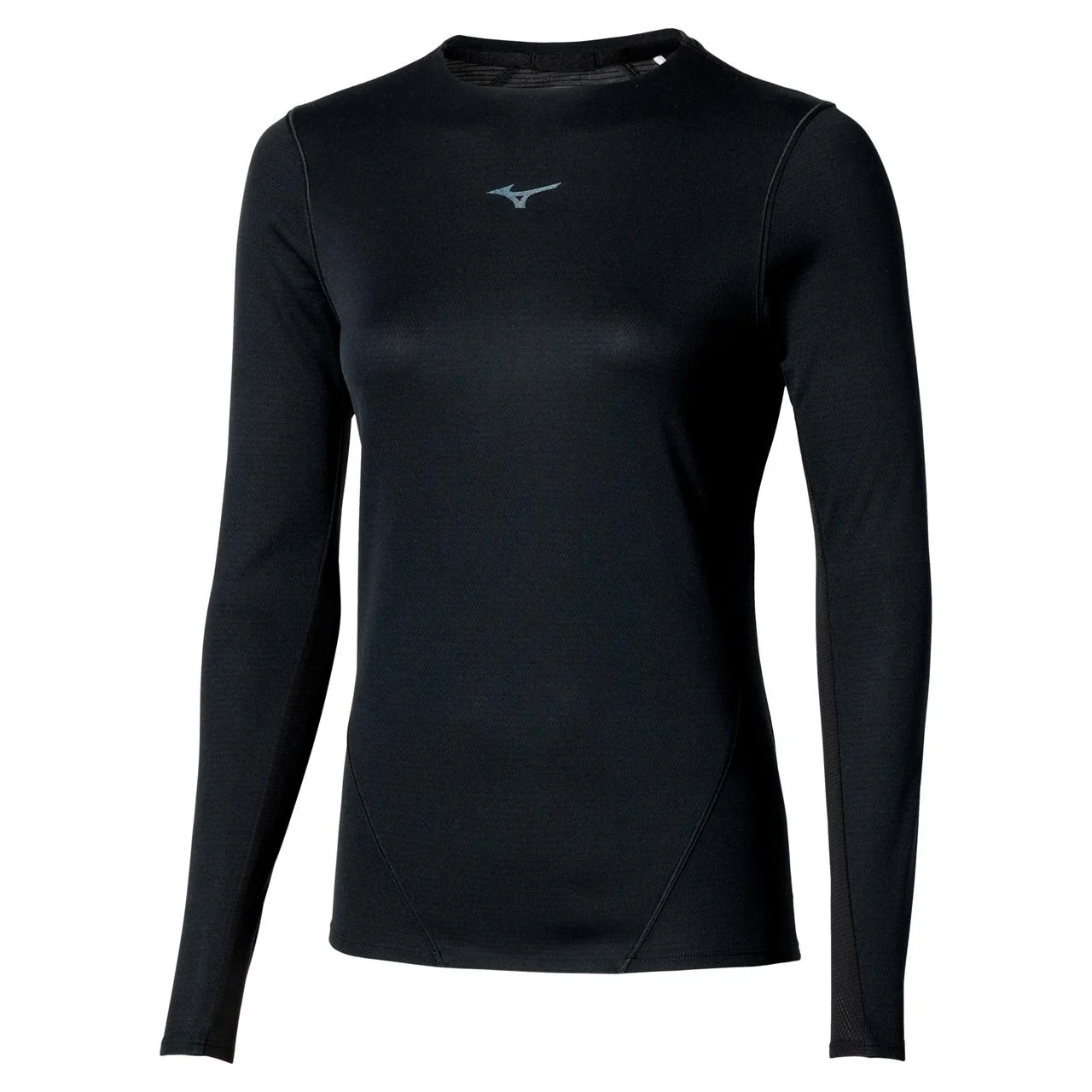 Stay warm and comfortable with the Women's Tech Thermal Charge Breath Thermo Long Sleeve Tee. Featuring Mizuno's exclusive Breath Thermo technology, this innovative fabric generates heat from escaping body vapor. Strategically placed Breath Thermo panels on the large muscle areas of the front ensure optimal warmth, while the rest of the top provides excellent breathability and stretch for unrestricted movement. Ideal for cold-weather workouts, this top combines advanced thermal regulation with superior comfort and flexibility. - BREATH THERMO® : Mizuno's exclusive thermal fabric technology that uses escaping body vapor to generate heat. - Flatlock seaming - Reflective details - Semi-Fitted: Designed to fit closely to the body. If you prefer a more relaxed fit, size up. - Eco Friendly Materials: Recycled materials