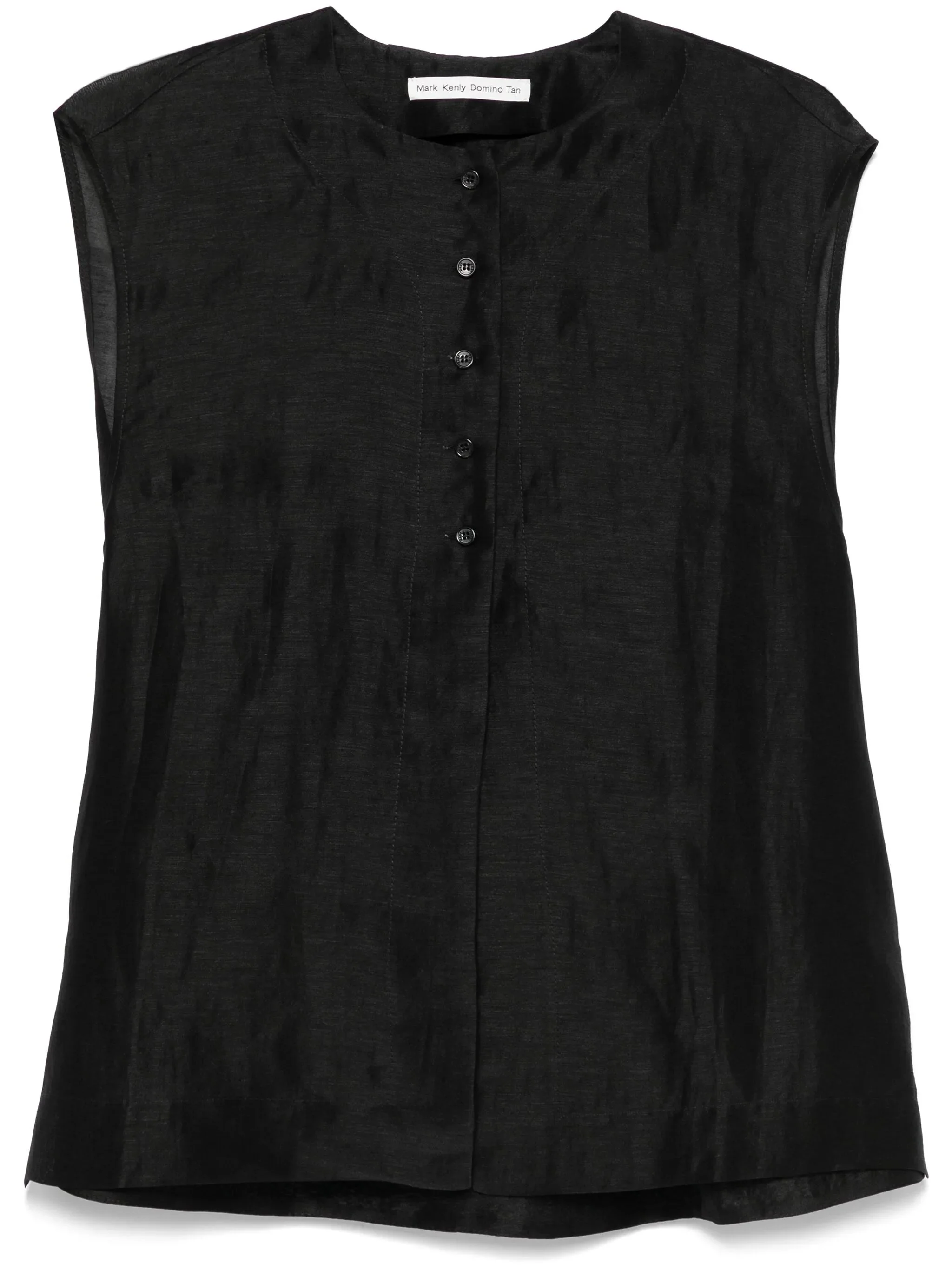 black front button placket crew neck sleeveless short side slits - Color: BLACK - Made in: Bulgaria - Designer Style ID: 25-1-054-3651 TALIN BLACK Composition and care Silk: 17.0%, Linen/flax: 83.0%