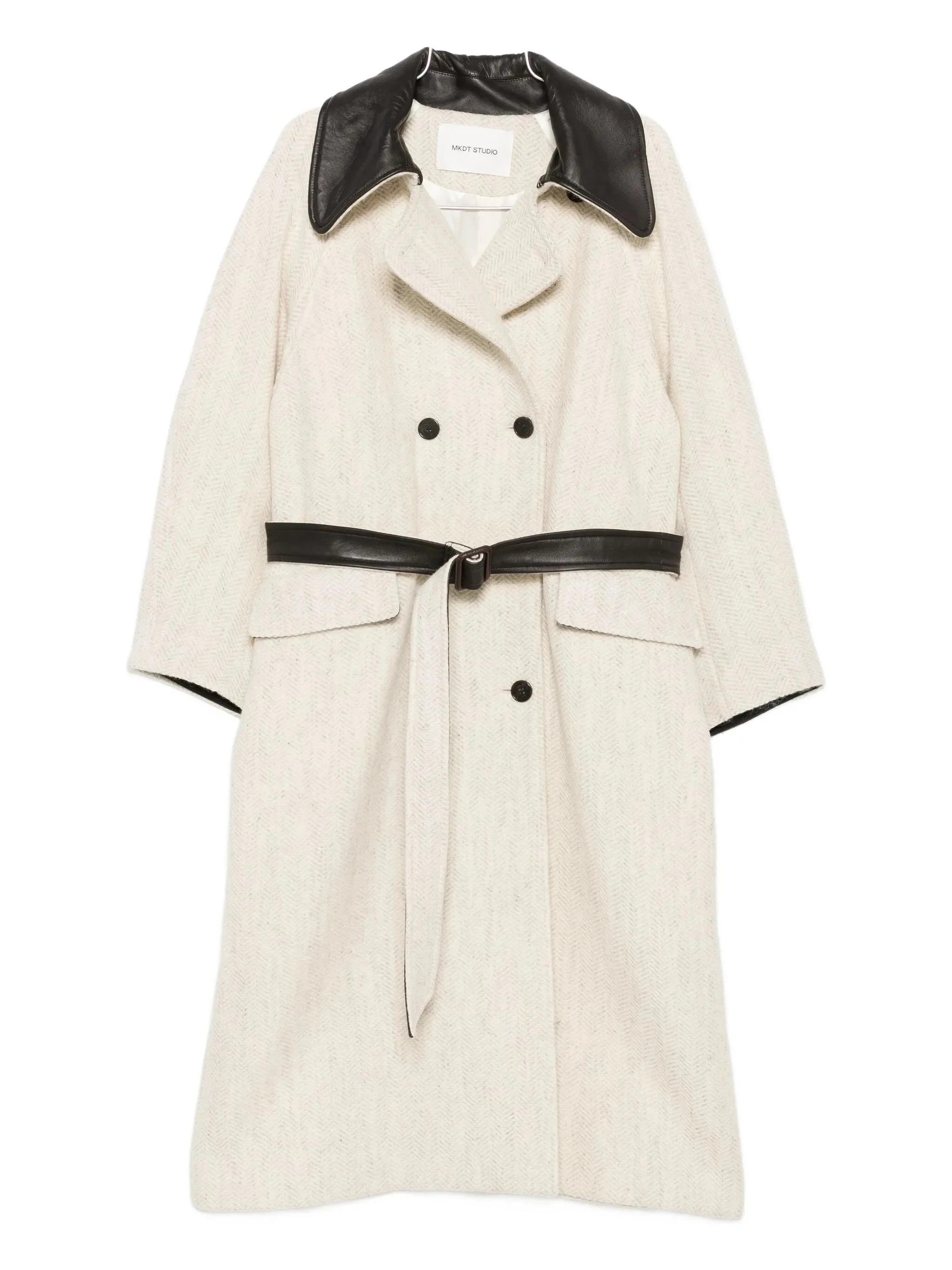 cream wool herringbone weave double breasted button fastening - Color: NEUTRALS - Made in: Romania - Designer Style ID: 25-4-119-3316 CIBEL OAT Composition and care Wool: 100.0%