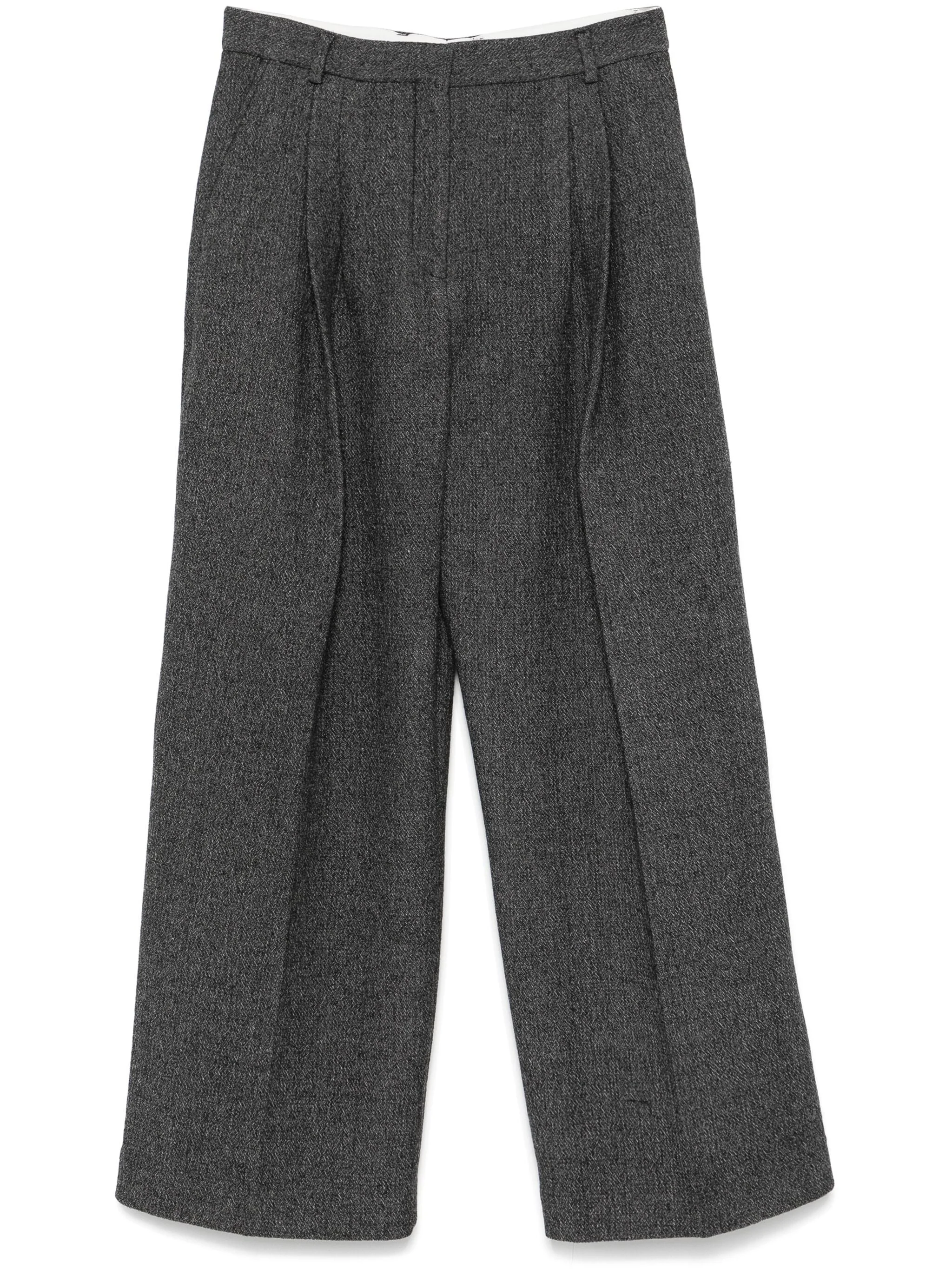 dark grey wool blend melange effect concealed front button, hook and zip fastening belt loops pleat detailing pressed crease two diagonal pockets to the sides two rear jetted pockets wide leg - Color: GREY - Made in: Romania - Designer Style ID: 24-4-096-3418 PORTLYN SMOKE Composition and care Lining Composition Cotton: 35.0%, Outer Composition Polyamide: 30.0%, Lining Composition Polyester: 65.0%, Outer Composition Wool: 70.0%