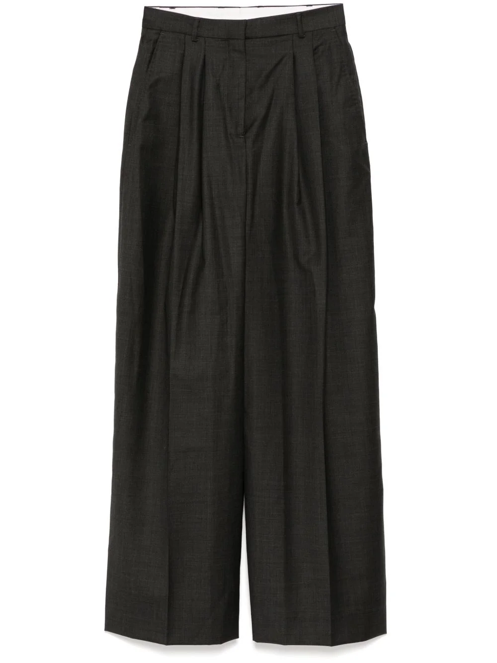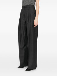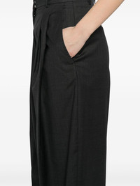 Priscilla trousers Highlights - Charcoal grey - Hook and zip fly fastening - Slash pockets - Rear button fastening pockets Imported Composition Outer: Wool 100% Lining: Viscose 100% SIZE & FIT Model measurements Height 5 ft 10 in(1.78 m) Bust/Chest 24.4 in(62 cm) Hips 35.43 in(90 cm) Waist 31.88 in(81 cm) FittingInformation Designed with a wide-leg cut, these trousers allow for a close fit at the waist and offer a loose and roomy fit over the leg Made from a midweight non-stretch fabric