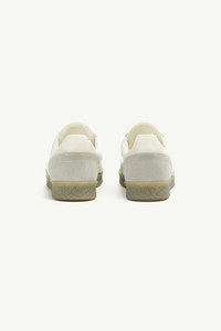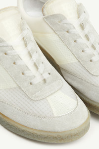 Crafted in eco-gum and accented with suede, MM6’s 6 court sneakers are inspired by the label’s clean-lined ethos. The design features a textured sole and large MM6 logo on the tongue. The brand’s discreet yet distinct signature, a horizontal line of white stitches, is present on the back of the shoes. Product Details Item ID SH1WS0003P6391T8041 Upper: 100% calf Leather Lining: 100% nylon Inside: 100% calf leather Sole: 100% rubber Lace-up sneakers in suede and ecogum MM6 label on the tab White stitch line at the back Made in Italy