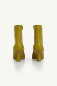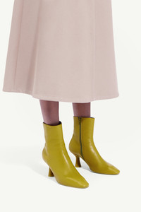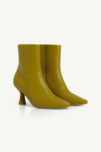 6-stamp heel, inspired by the seventies, lends an elegant twist to pointed ankle boots in nappa leather. MM6’s discreet yet distinct signature, a horizontal line of white stitches, is found on the back of the shoes. Product Details Item ID S59WU0212P2451T8013 Details Composition: Upper: 100% Lambskin Leather - Lining: 100% Calf Leather - Inside: 100% Calf Leather - Sole: 100% Calf Leather