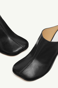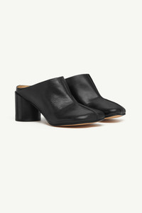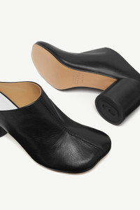Sleek and understated, these anatomic slippers feature a block heel and a slip-on design for effortless wear. With their sculptural form, they reflect MM6’s minimalist aesthetic and bold approach to everyday essentials. Product Details Item ID S59WX0071P5000T8013 Upper: 100% calf leather Lining: 100% calf leather Inside: 100% goat leather Sole: 100% calf leather Heel height: 7 cm Shiny leather slipper MM6 anatomic shape Toe stitch Cylindrical heel White stitch line at the back Made in Italy